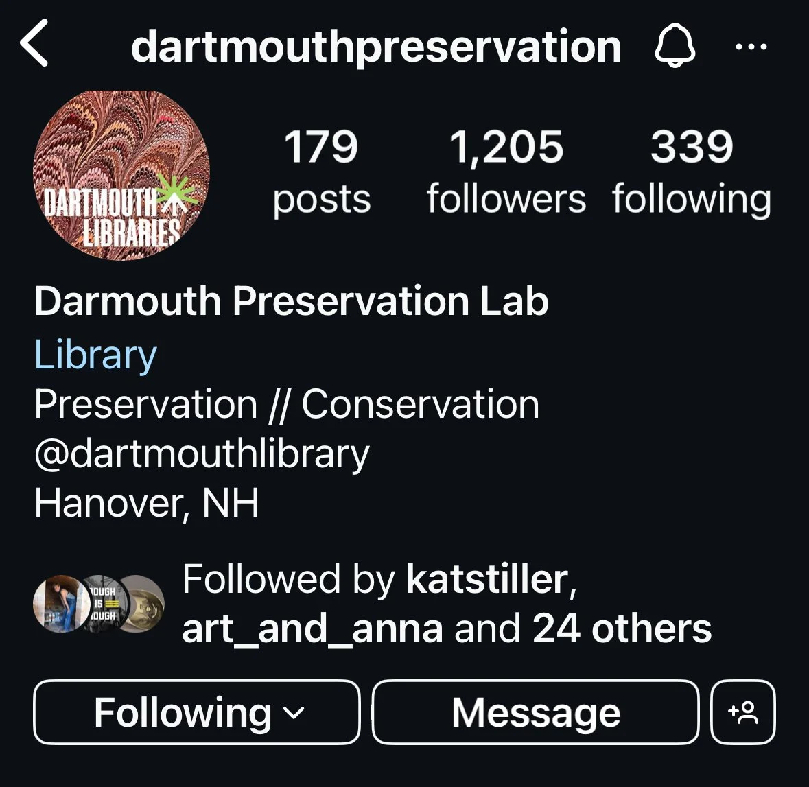 I have been working to make the conservation lab’s social media more robust to allow for more interactions both within the college and with the public as a whole.